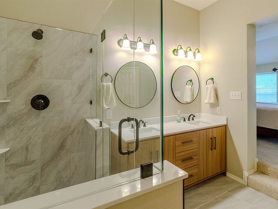 Kitchen has beautiful granite countertops, island, stainless steel appliances, plenty of counter and storage space, pantry and breakfast area. Kitchen and breakfast area overlook family room with gas fireplace and getting plenty of beautiful sunlight through oversized windows. Spacious primary suite with luxurious renovated bath has modern looking dual sinks, gorgeous frameless custom-built shower, brand new beautiful vanity with stylish faucets and framed mirror. Formal living room can be used as a dining room. Upstairs includes an oversized game room with a walk-in closet . Neighborhood is accessible to walking paths that connect to parks, playgrounds, community pool and award-winning Andrews Elementary and also accessible to beautiful bike paths connect to parks. Perfect location surrounded by the best restaurants, shopping and Neighborhood Walmart is just blocks away.