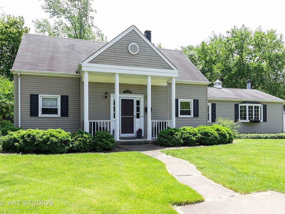 This delightful Flossmoor Estates Cape Cod is situated just a stones throw from historic downtown, metra, schools & library! Great location to dine, shop, play tennis, ice skate & walk to Western Ave grade school. On to the home - tastefully done, open floor plan/design w/great natural light & interesting touches throughout. LR/DR combo w/HW flooring overlooks grounds. Updated KT w/tons of cherry cabinetry, CT flooring & breakfast bar opens to the huge inviting FR w/vintage arched double door entry, beamed cathedral ceiling, FP w/gas start & newer carpet! First floor BR w/private BA could double as a study. Two addl BR on 2nd floor share a newer stunning 2nd floor bathroom w/subway tile, mosaic flooring, pedestal sink & newer tub! Generous closets throughout the home! Large basement & detached 2.5 car garage! The grounds are lovely w/pro landscaping, mature trees w/old fashioned swing and a huge Trex like deck w/4 sections including a terrific Pergola! Nothing to do but move in!