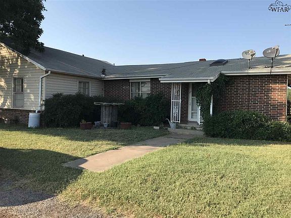 Looking for a nice country property? Here is almost 16 acres, complete with irrigation access, pond in the back, mature trees and barbwire fencing on the entire property! The home features 3 good size bedrooms, 2 bathrooms, a large living room with a wood burning fireplace, separate utility room, and a detached two car garage . Great farm house charm, ready for your updates and personal touch. 15 acres are ag exempt. Burkburnett school district. New roof in the works!