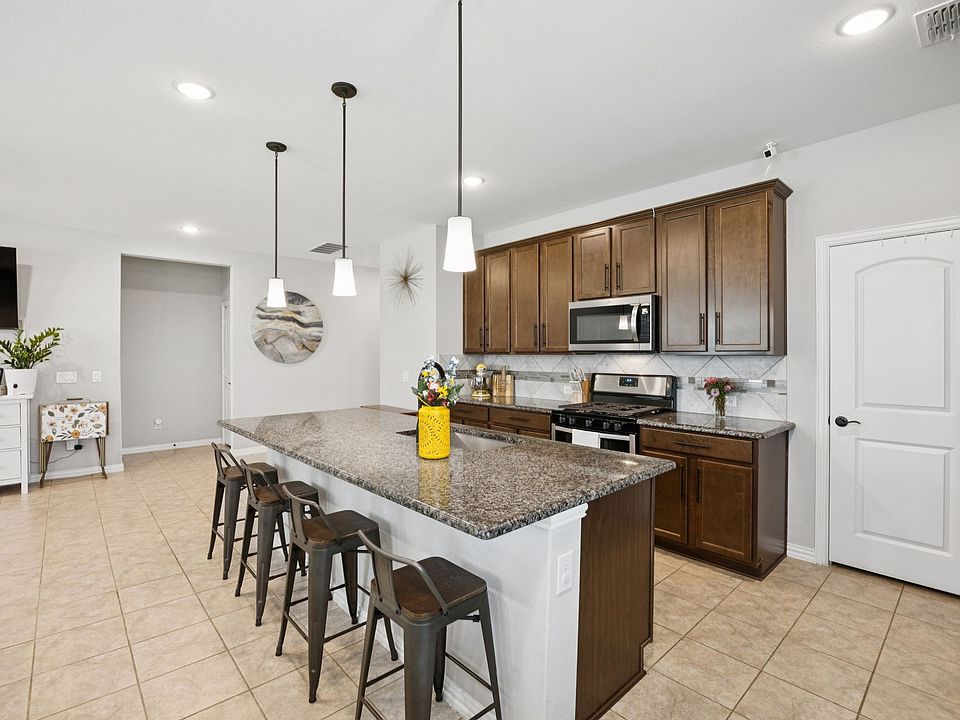 - Decorative/Designer Lighting Fixtures, Eat-in Kitchen, Granite Counters, Kitchen Island, Loft, Open Floorplan, Pantry, Walk-In Closet(s)