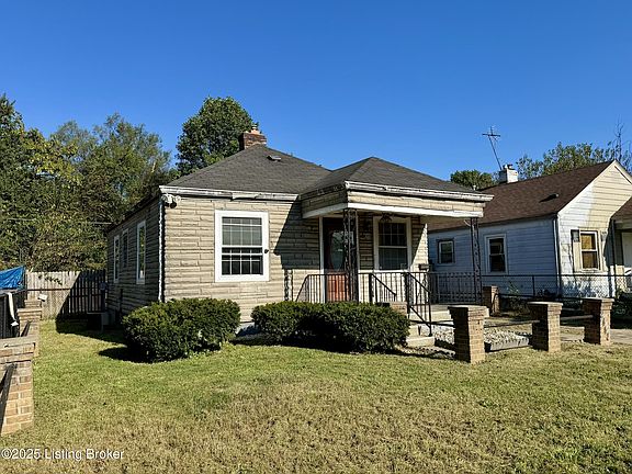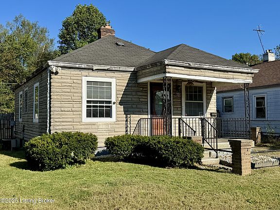 Enjoy a welcoming front porch, a fenced yard offering privacy in the back, and an attractive metal fence with stone pillars in the front. The property also includes an attached carport plus a detached 1-car block garage for additional storage or workshop space. The rear lean-to can easily be removed.