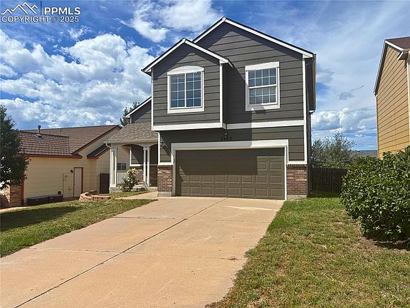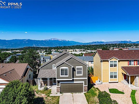 Experience Colorado living at its best in this inviting 4-bedroom, 4-bath home tucked into Constitution Hills. Designed with both relaxation and everyday functionality in mind, this residence captures the best of mountain-view living while keeping you close to everything you need. The main level welcomes you with natural wood flooring, soaring ceilings, and an open concept layout. Gather in the spacious living room around the gas fireplace, host dinners in the sunlit dining area, or enjoy cooking in a kitchen with a breakfast bar and backyard views for when you`re waiting for your coffee in the morning. Step outside to the deck where you’ll find front-range sunsets that look like they came right out of a painting. Upstairs, the primary suite feels like a retreat—complete with a five-piece bath, soaking tub, walk-in closet, and an adjoining office or sitting area highlighted by a second fireplace. Two additional bedrooms and another full bath complete the upper level. The fully finished walk-out basement provides flexibility with an additional bedroom, bath, and a spacious rec room. Whether you need a guest suite, playroom, or home gym, the options are endless. Conveniently located near trails, parks, schools, shopping, grocery stores, and Peterson SFB, this home makes daily life effortless while giving you the chance to step outside and immediately enjoy the Colorado outdoors. With over 2,200 finished square feet, mountain views, and multiple living areas, this home offers a balance of comfort, style, and practicality.