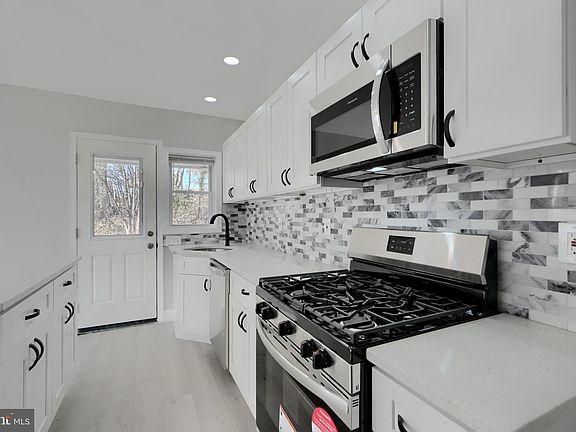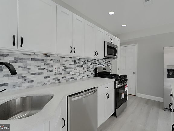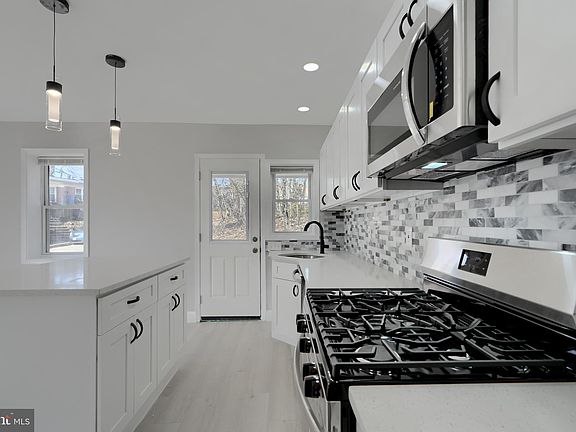 Wow, Completely Remodeled! Gorgeous Kitchen with Stainless Appliances, Quartz Countertop and Breakfast Island, Coordinating Backsplash, and Wood Shaker Cabinets. Upstairs Bathroom features Custom Tilework, Extended Shower, Designer Fixtures, and Designer Lighting. Fully Finished Basement Suite includes a Family Room, plus Bedroom and Full Bathroom with Calcatta Tile and Designer Fixtures. All New Doors, Replacement Windows, New Carpet and LVT Flooring, New Central Heat & AC, Cool Modern Lighting., All New Doors - Interior and Exterior! Baltimore City Permits and Inspections. You will Love this Home!