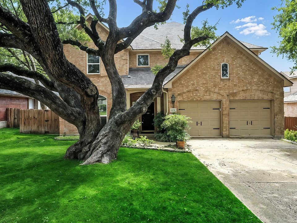 Welcome to your new Schertz retreat! This stunning 4-bedroom, 3-bath home checks all the boxes - inside and out. Step into a bright, airy layout with tall ceilings and fresh modern touches throughout. The fully renovated kitchen is ready for everyday living and entertaining, featuring updated cabinets, new counters, a farmhouse sink, stylish LED recessed lighting, and all-new appliances including the microwave and stove. Enjoy meals at the island, in the breakfast area, or the separate dining room for more formal gatherings. Downstairs, you'll find a guest-friendly bedroom with easy access to a full bath - perfect for visitors or a private office setup. The spacious living area has a cozy fireplace and plenty of natural light. Upstairs, the primary suite feels like a getaway with high ceilings, large windows, and a beautifully updated bathroom complete with new cabinets, counters, a double sink, a refreshed shower, soaking tub, new tile, faucets, and fixtures. The additional bathrooms have been upgraded too, with new counters, sinks, fixtures, and toilets. Step outside to your backyard oasis - a fiberglass pool that's been professionally maintained with a new pool pump, plus partial gutters, repaired sprinklers, and low-maintenance landscaping with sails and rocks. The patio is ready for summer BBQs and poolside lounging, all backing to a peaceful greenbelt for added privacy. Other thoughtful updates include a new garage door opener (one of two) and a serviced sprinkler system with all zones working. All this, just minutes from I-35, shopping, dining, and about 15 mins to Randolph AFB.