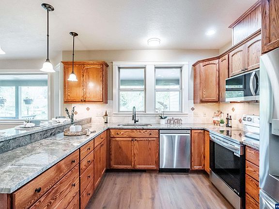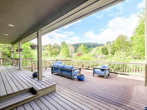 Oregon Paradise! 1850ft of Mary's River frontage, waterfall, & across from Starker Forest, stunning property! Living Rm. w/gas fireplace, dining & kitchen, elegant granite, NEW SS appliances, entrance to covered deck overlooking expansive garden area. Upstairs, generous layout w/ gigantic bonus/rec rm, office/bedrm, nicely appointed bedrms w/convenient full bath. Primary w/walk-in closet & spa tub/shower, vanity. RV garage. Pull through storage, workshop, shed/barn, fenced pastures, solar panels/new roof!