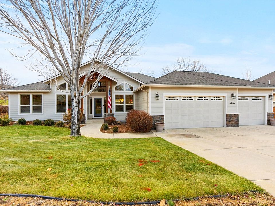 Step into spacious living w/ soaring vaulted ceilings & an effortless open layout designed for hosting, relaxing, & comfort. This gorgeous single level 2,260 sq. ft. home offers 4 generous bedrooms plus a dedicated office, providing flexibility for work & life. The expansive kitchen features brand-new Bosch appliances, ample counter space, & a layout that opens beautifully into the dining & living areas. The thoughtful split floor plan places the primary suite on one side of the home, w/ 3 additional bedrooms on the opposite wing for added privacy. The primary bedroom includes private access to the fully fenced backyard—perfect for stepping straight into your hot tub for year-round relaxation. Recent upgrades include new exterior paint & a brand-new storage shed for added convenience. A spacious 3 car garage offers plenty of room for vehicles, equipment, or recreational gear. Meticulously maintained and thoughtfully updated, this is a home you'll love the moment you step inside.