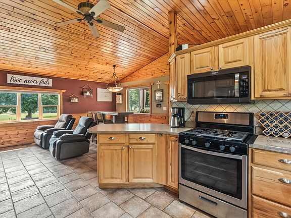 Welcome to this beautifully maintained 4-bedroom, 2-bath home, complete with an additional bath located in the rec room area. Nestled on a spacious 1.63-acre lot in the quiet community of Pease/Milaca, this property has custom finishes throughout, including hickory cabinetry and a stunning knotty pine vaulted ceiling.