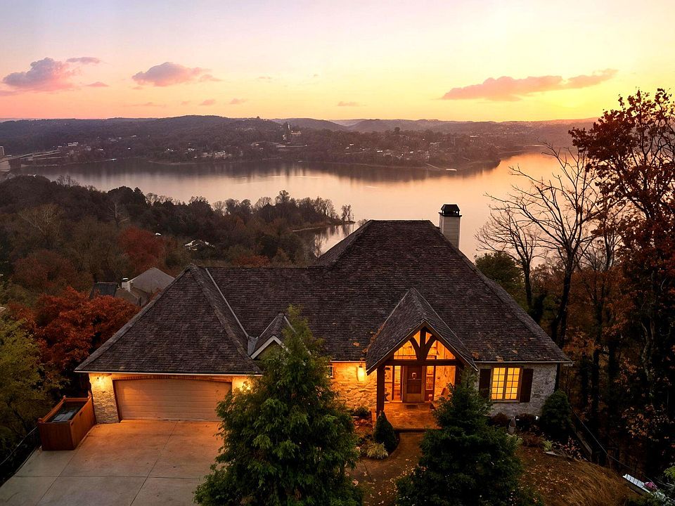 EXPERIENCE MILLION $$$, year-round PANORAMIC views of Table Rock Lake from this spectacular French Country-inspired custom home close to Big Cedar and Long Bridge.. Designed and built by renowned local builder Thom Holman, this residence offers a breathtaking lake panorama from nearly every room, soaring ceilings, and an open, airy layout that captures the essence of lakeside luxury.The spacious living area features a wood-burning fireplace and flows seamlessly into the open kitchen, complete with alderwood cabinetry, abundant granite countertops, accent lighting, and beautiful hardwood floors--perfect for entertaining. Step onto the expansive deck and take in one of the most impressive lake views in the area.The main-level primary suite provides generous space, a large walk-in closet, and stunning lake scenery. Two additional guest bedrooms each offer private ensuite bathrooms, while a fourth room--ideal as a bedroom, office, or theater--also enjoys a lake view. An additional bonus room under the garage, equipped with its own heating and cooling, is perfect for a game room or extra sleeping space.This home is beautifully landscaped with minimal yard maintenance and includes a sprinkler system, extra parking pad, and a double garage. Located just before the Long Creek Bridge on the Big Cedar side of the lake, you're only one mile from the public marina and just 12 minutes from Branson. A newer 50-year roof was installed in December 2017.Best of all, a 10x24 boat slip with lift and locker is available within the subdivision for $85,000, only a short ATV ride away.Luxury, convenience, craftsmanship, and unforgettable views--this is Table Rock Lake living at its finest.