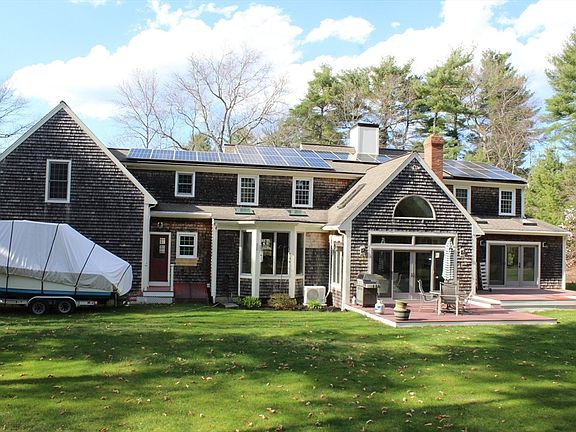 This Beautiful Expanded Cape is located in the sought after Arrowhead neighborhood. Theskylit, vaulted open floor plan creates a bright and spacious atmosphere especially in thekitchen when entertaining or overlooking the sunken living room with fireplace.The Main Level hosts the luxurious primary bedroom with the main bath having been recentlyrenovated to include upscale features like a rain shower, body sprayers, and a programmableheated floor.The Second level boasts two additional bedrooms and bath, and a large great room over thegarage creating plenty of additional space for family and guests.The bonus finished Lower Level adds additional entertaining space with another family roomwith a large bar, an office and a workshop.The state-of-the-art solar system equipped with battery charging completes this home foruninterrupted power supply. Close proximity to Route 3.