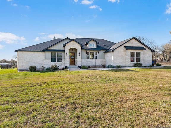 **Open House 4/6 1pm-3pm** Better than new home with 20x24 insulated shop, pool and beautiful finishes in La Vernia ISD! This home is a must see! Gorgeous 4bd/2.5ba home with a stone and board and batten exterior sitting on a spacious 1 acre lot. Upgraded light and plumbing fixtures throughout the home. Chef's kitchen with tons of custom cabinets and beautiful stone countertops. The giant island is perfect for holidays and entertaining. Lovely dining area that will accommodate a large dining table set. Open concept living with a spacious living room that has an amazing view of the backyard through the picture windows and a lovely floor to ceiling stone wood burning fireplace. Escape to you master suite that is spacious and features a spa style bathroom with walk in shower, soaking tub, his and her vanities and two walk-in closets. Secondary bedrooms are spacious, all have walk-in closets and huge windows for lots of natural light. Secondary bathroom has double vanities and separate shower/water closet. Wait until you see this backyard...hours of family fun will be had running barefoot through the grass, enjoy cooling off this summer in the top of the line above ground pool with brand-new deck, great views and a garden area. All the extra storage you need in the detached metal shop that has electric, two roll up doors and has been insulated. Fully fenced backyard and sprinkler system. Home has a whole house water filtration system and water softener. This move in ready home is a must see! Call today for more info!