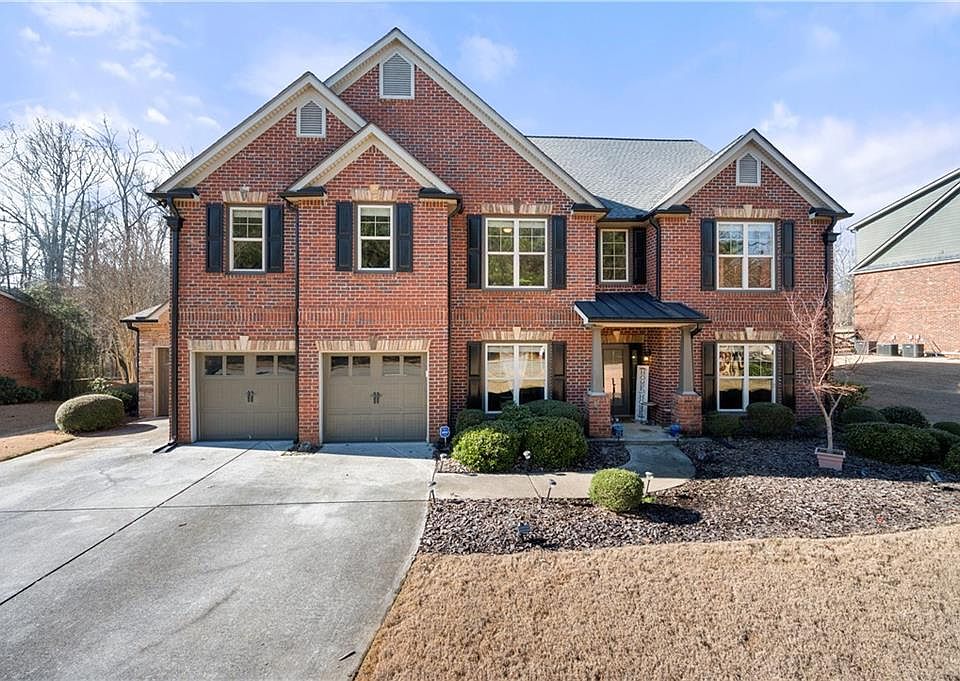 With a fabulous 3-story floor plan, this gorgeous brick traditional home in Dawson’s Creek, a highly sought after West Cobb neighborhood in the Harrison School District, is move-in ready and perfect for living and entertaining, inside and out! The 2-story foyer opens to upgraded wood look LVP on the main, high ceilings, architectural details, and plenty of space for comfortable day-to-day living. The private home office has French doors with a custom feature wall, and the entertainer’s full-sized dining room offers coffered ceilings and trim for twelve. The floor plan opens to the fireside great room, complete with transom windows, and leads to the chef-inspired custom kitchen and breakfast area. Featuring soft-close cabinets and drawers, stainless steel appliances and double ovens, tile backsplash, custom shelving and so much more! This kitchen is perfect for dining. The main level also has a guest suite, and adjoining full bath. On the 2nd level, the oversized primary suite features a separate sitting area, trey ceiling, and floor-to-ceiling windows. The ensuite has double vanities, whirlpool tub, separate shower, and a daylight walk-in closet. Additionally, there are 3 secondary bedrooms, one with en suite, and a Jack and Jill bath with double vanities, connects the other 2 bedrooms. Laundry is conveniently located on the 2nd level. All bedrooms throughout the home have oversized walk-in closets for organized storage and the baths have oversized tubs. The 3rd story loft space is spacious and has 2 additional bedrooms and a full bath - great for a media room, playroom, teen suite, or additional guest suite. The spacious fenced backyard features a patio with pergola and outdoor kitchen set up, as well as a pizza oven. The patio is also prewired for a Jacuzzi, making it perfect for entertaining or easy evenings at home. The 3-car garage and wide driveway make unloading groceries a breeze. Nestled on a manicured lot, this home is well-maintained, bathed in natural sunlight, and features plenty of space for the entire family’s activities.