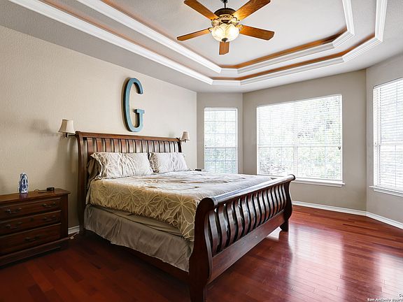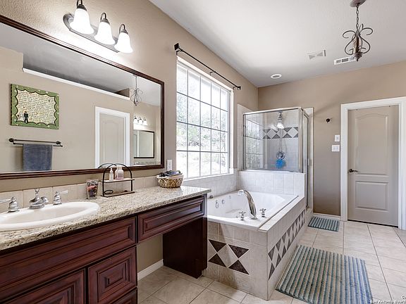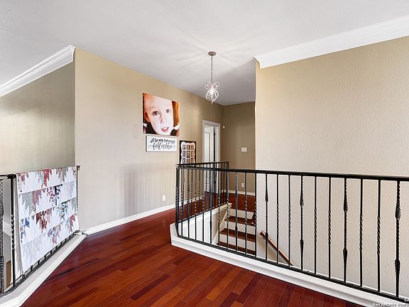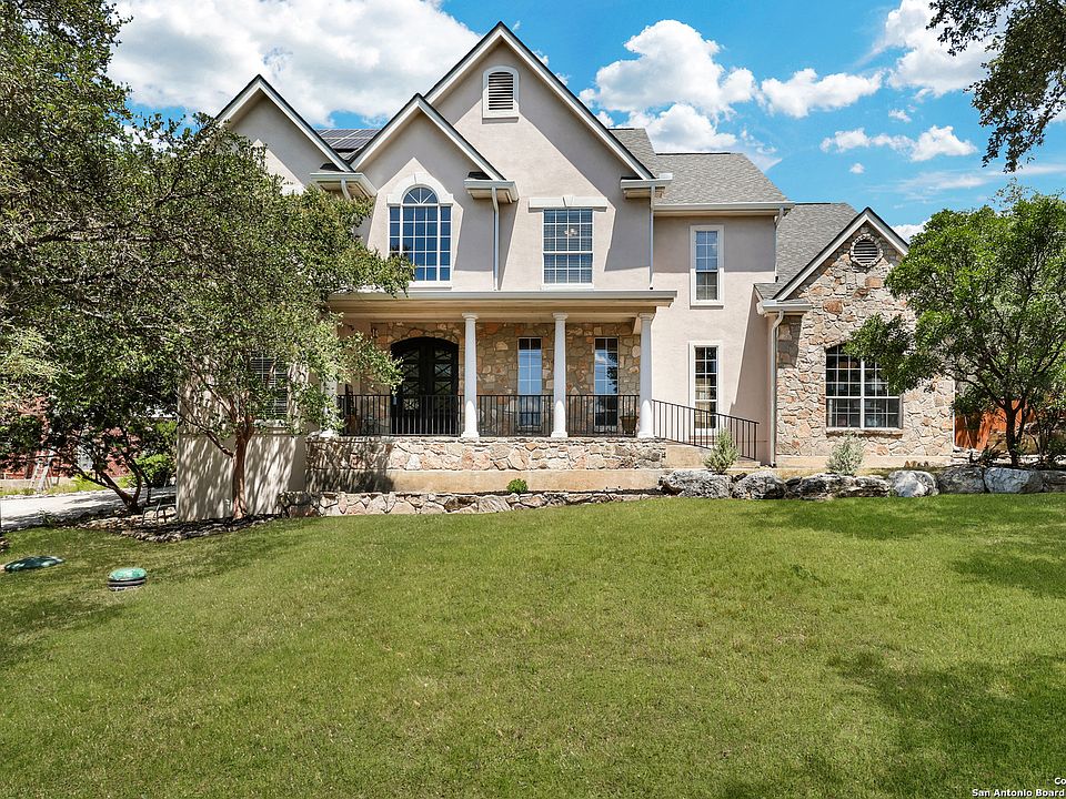 Stunning Custom Home with Hill Country Views in Timberwood Park. Welcome to this exquisite custom-built home, perfectly situated in the highly sought-after Timberwood Park community. This residence offers a perfect blend of luxury, comfort, and nature, featuring hill country living in an idyllic setting for relaxation and entertainment. The spacious and inviting family room includes high ceilings, abundant windows, custom shelving and a cozy gas fireplace, making it the perfect spot for both intimate gatherings and larger family events. The front and back staircases add a dramatic touch to the home's design and provide easy access to all levels. The gourmet kitchen is a chef's dream, equipped with a gas cooktop, a central island, and beautiful tile accents. Upstairs, you'll find a spacious media room along with two secondary bedrooms. The private master suite is a peaceful retreat, featuring a luxurious en-suite bath with a whirlpool tub, separate shower and his & her vanities. Downstairs includes a guest room, spacious office and storage galore! Outdoor living is equally impressive, with both front and back covered porches, mature trees offering privacy with built-in outdoor kitchen, covered patio, fire pit and raised garden as well as a Michael Phelps swim spa! Updates include: new roof (2025), HVAC (2023), Solar panels(2018), Water softener (2019), water heater (2025), gutters added and many more. Situated in coveted Timberwood Park, amenities include a swimming pool, tennis, basketball and pickleball courts, new clubhouse, and scenic jogging trails. You're also close to major highways, shopping, dining, and entertainment, all while enjoying the peaceful, suburban lifestyle. Don't miss the opportunity to make this magnificent property your own. Schedule your private tour today!