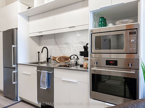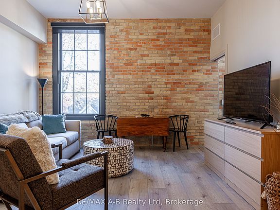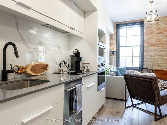 Welcome to The Bradshaw. Unwind in the heart of Stratford's boldest & most prominent restoration masterpiece. Brick facades unfold before you, buttressed by 200-year-old industrial timbre framing and accented with tasteful, modern finishings and historical decor elements. Boasting a skyline view of Stratford's City Hall, a fully equipped modern kitchen, functional living space, & ensuite laundry, this 1 bedroom + den unit is a short walk to downtown restaurants, coffee shops, & independent merchants. Venture a few steps further & find yourself at the edge of Lake Victoria. Shown by private appointment only.