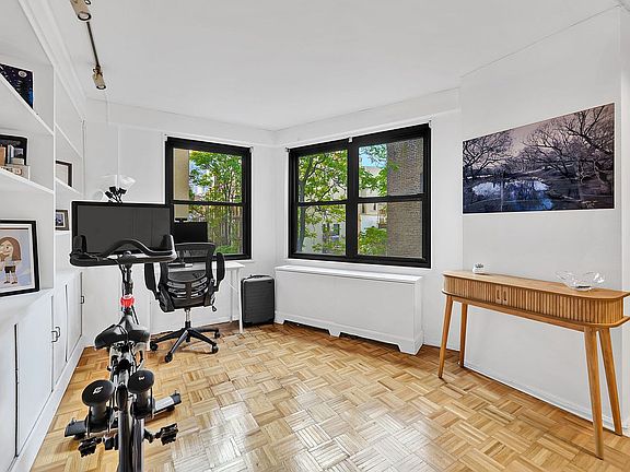 Presenting apartment 5A, an expansive and authentic one-bedroom situated in a remarkable 24-hour doorman building. This serene and sunlit sanctuary boasts a thoughtful layout, providing ample room for both a dining area and a home office. Revel in the melodious sounds of nature through dual exposures that flood the space with natural light, offering delightful tree-top views and a glimpse of the majestic NYC skyline, particularly stunning when illuminated at night. The apartment enjoys a peaceful ambiance with north and west exposures, delivering brilliant afternoon sunlight. Spanning approximately 800 square feet, this residence features a beautifully updated kitchen and bathroom, generous closet space, and a spacious king-sized bedroom.