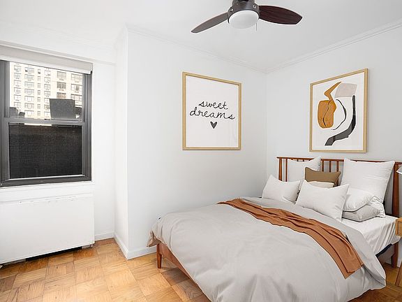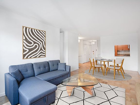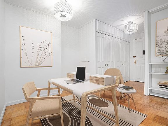 New Price – Recently Renovated One-Bedroom in Murray Hill Discover this charming one-bedroom apartment in the coveted Spruce Ridge House, a well-maintained co-op building with a 24-hour doorman, located in the vibrant Murray Hill neighborhood. The apartment boasts a spacious living area with peaceful garden views, framed by trees and the iconic New York City skyline. A separate nook offers versatility—ideal for an office, dining area, or additional seating. Upon entry, the foyer features two large custom closets, providing ample storage space.