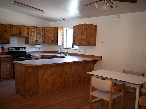 Visually satisfying with brick heat-retainig wall, arches, custom cabinets. Four large bedrooms, two full baths, inside/outside access to full basement.