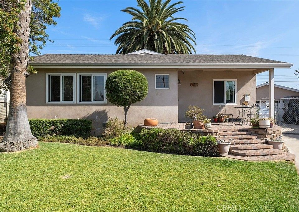 Charming, bright and spacious three bedroom, two bath mid-century bungalow located in quiet Gardena neighborhood at end of cul-de-sac. Spacious 7037 sq. ft. completely fenced lot (brick, wood and chain link), offers endless possibilities. Entry hall leads to light-filled living room and auxiliary bedrooms. Present owner added third bedroom, second bath, family room with 13 ft vaulted ceilings, formal dining area and updated kitchen with Formica Solid Surface countertops and ample counterspace. Double-door refrigerator, stove, microwave and dishwasher remain. Double paned windows throughout home. Separate laundry room with storage cabinets and access to yard. Ensuite primary bedroom has bath with oversized tub, shower, free standing vanity, brand new double sinks and new faucets, walk-in closet, and is separated from other bedrooms, affording privacy and access to yard. Remotely operated skylight in guest bath. Tiled and hardwood floors throughout home. Pocket door in kitchen. Ethernet connections in living room and primary bedroom. Long gated driveway allows parking for 4-5 cars as well as a double garage. Quiet cool whole house fan in attic. Home recently painted throughout and is move-in ready. Close to shopping, parks, schools, CSU Dominguez Hills and El Camino colleges and restaurants. Property is in Los Angeles Unified School District. Easy access to the 91, 110, and 405 freeways.