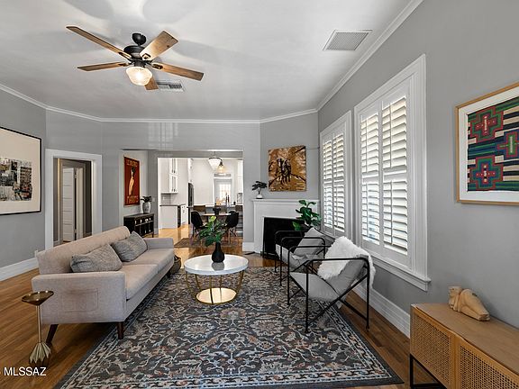 Opportunities like this don't come around often! Set on a coveted corner lot in West University, this exceptional 1899 property offers a one-of-a-kind blend of charm, privacy, and income potential, all just minutes away from Tucson's most beloved shops, restaurants, and the university.The main residence features a welcoming wrap-around porch, 4 spacious bedrooms, 3 bathrooms and a two car garage. A thoughtfully designed remodel highlights the heart of the home: a chef's kitchen quartz countertops, custom cabinetry, walk-in pantry, and a large island perfect for hosting. Beyond the main house, a separate 1-bed/1-bath guest house provides flexible space for visitors or extended family, while a detached duplex, each side offering 2 bedrooms and 1 bath, adds incredible rental income to offset your mortgage.