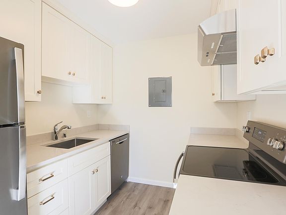 Recently remodeled 1 Bedroom 1 Bath unit includes maple, soft close kitchen and vanity cabinets with Caesarstone quartz countertops and Kohler sinks and fixtures. Slate color stainless steel finger print resistant energy efficient stainless steel appliances - Maytag dishwasher, GE refrigerator and GE radiant heat stove/oven and garbage disposal. In-unit Washer and Dryer. Luxury plank flooring throughout. Double-paned windows and frameless beveled sliding mirrored closet doors. Spacious living room and dining area. Large storage area included with one covered parking space. Plenty of street parking. Water and garbage paid by owner. PGE paid by tenant. Sunny and bright, clean, quiet and private. Excellently managed and maintained. 6 or 12 month lease options. 1 block away from Whisman Tennis Courts and Stevens Creek Trail. Conveniently located 1 mile from Cal Train and Downtown Mountain View. 2 Miles from Google and Microsoft. Easy access to Highways 85, 101, 280 and Central Expressway. Owner pays for water and garbage.