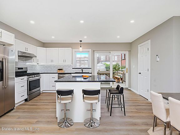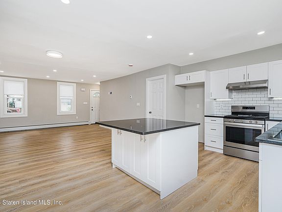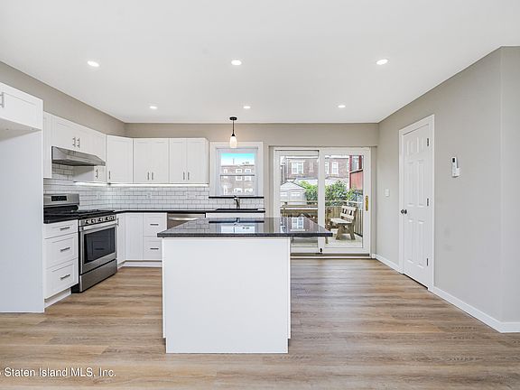 Fully renovated full brick one family home, priced for a quick sale. Move in ready featuring living room/dining room with recessed lighting, split unit for AC, kitchen with an island, granite countertops, full backsplash, deep sink, stainless steel appliances, recessed lighting, sliders to large private yard with deck & shed, 1/2 bath. Second floor has 3 bedrooms, split units for AC, ceiling fixtures & closets, a second floor shared bath. Fully finished basement area with laundry room, furnace room, storage, separate entry. Brand new roof, split units for ac, electric, and flooring. Home has 3 zone baseboard heat. Great location, close to buses, ferry, schools, & shopping.