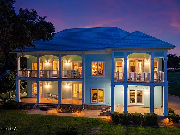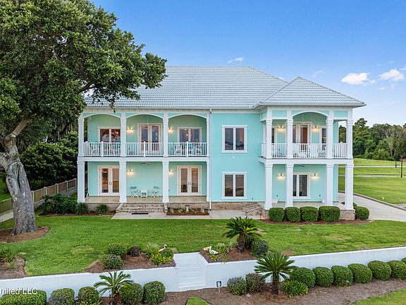 Spectacular Front Beach Home in the Heart of Ocean Springs! Experience coastal luxury at its finest in this exceptional custom-built home located directly on Front Beach in the highly desirable Downtown of Ocean Springs. Set on a lush and private .67-acre lot in the coveted golf cart district, this property offers multi-million dollar views of the Gulf and is nestled within one of the highest-rated school systems in the state. Designed for both elegance and comfort, this 3-bedroom, 2.5-bath home with an office/study/nursery room features four expansive covered porches/balconies, all with stunning water views, plus an elevator for easy access to both levels. The chef's kitchen is a culinary dream, boasting designer appliances, a gas cooktop, double ovens, ice maker, beverage refrigerator, wine fridge, and center island that is perfect for entertaining. The spacious great room showcases crown molding, high ceilings, custom window treatments, a gas fireplace with a coverable TV above (all TVs included), and is wired with a security system for peace of mind. The large primary suite offers its own private deck, an oversized walk-in closet with built-ins, double vanities, a soaking tub, and a separate shower. All bedrooms offer breathtaking views and private access to the covered decks. Downstairs, the 980 sq. ft. garage includes a workshop area, sink, rubber flooring, and room for storage or recreational gear. Additional features include a whole-home generator, some hurricane shutters, irrigation system, and plush, professionally landscaped grounds with mature oak trees and a private, tree-lined rear entrance. Enjoy breathtaking sunrises and sunsets from your own porch in this rare waterfront gem. This is where coastal beauty meets modern comfort, all within walking distance to downtown shops, dining, and entertainment. Owner had a pre list home inspection completed and it is attached to this listing. Much more so don't miss out, call now!