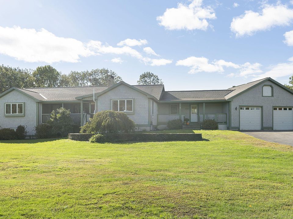 This sprawling ranch home perched on 2+ acres is conveniently located near Gorham center and abuts the Gorham trail system. Buyers will love the sun-drenched open concept with cathedral ceilings, exposed wood beam and stone fireplace. The main floor features a primary bedroom suite, 2 additional bedrooms, 2 additional full baths and first floor laundry. The finished, daylight basement features fabulous space perfect for guest space, recreation room or home office. The front farmer's porches, including one screened-in porch, offer a peaceful spot to enjoy morning coffee. The large backyard with multi-level deck, above ground pool, patio area and firepit offer year-round enjoyment. Energy efficient amenities include a Jotul wood stove in the family room, a heat pump in the kitchen/living room area, Buderus wall-mounted radiators in every room which are individually controlled and blown-in insulation was added in the attic. Easy commute to Downtown Portland, Maine Mall and Lakes Region.