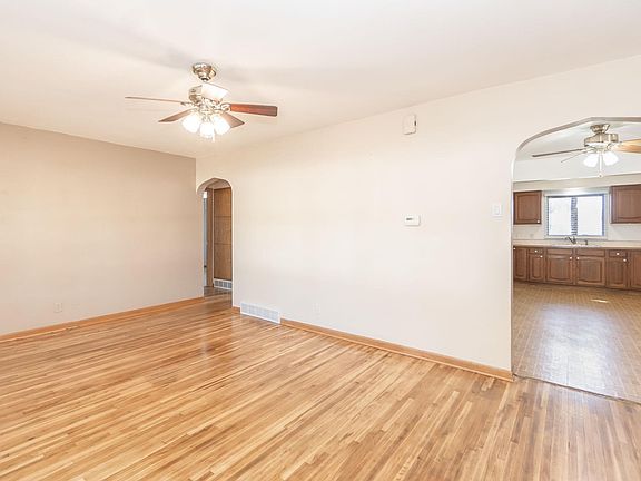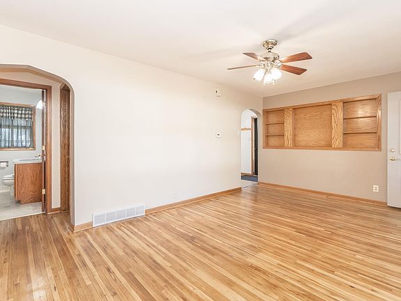 Situated in an established, tree filled neighborhood this ranch offers fantastic curb appeal on the outside as well as a welcoming setting on the inside. Inside, you'll be greeted with hardwood floors, built-in shelving in the living room and a picture window. The large kitchen offers plenty of cabinets with room for a large dining table as well. Downstairs, the potential is endless and is already semi-finished with still plenty of opportunity to leave your own touches. Outside you'll find a large private background and a two stall garage with attached work shop too! Property is being sold as is/where is.
