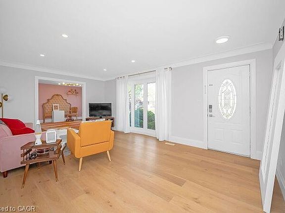 Nestled on a peaceful, family-friendly street, this beautifully renovated side split home offers modern living with all the updates you could wish for. Set on a sprawling double wide lot with 89 of frontage, this home was completely transformed in 2022, and boasts a new kitchen, bathrooms, hardwood flooring, pot lights, and more. The large family room is seamlessly connected to the updated kitchen, perfect for entertaining. A spacious living room leads into a formal dining room, complete with a cozy wood-burning fireplace and a walkout to the backyard. The kitchen shines with white cabinetry, sleek quartz countertops, a subway-tiled backsplash, and brand-new stainless steel appliances, including a refrigerator, stove, and dishwasher. Upstairs, the primary bedroom is generously sized, accompanied by two additional bedrooms and an updated 4-piece bath. The lower level features new laminate flooring throughout and offers a convenient walk-up to the backyard. Enjoy the expansive, fully fenced backyard with a new deck, ideal for creating your dream outdoor oasis. The pool-sized lot provides endless possibilities don't miss out on this incredible home!
