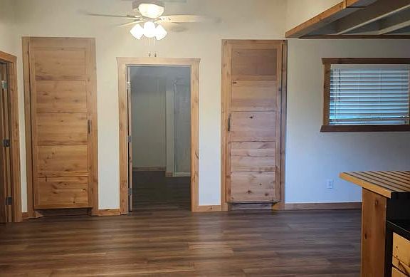 Built in 2024, one bedroom, one bath house, custom cabinets, large rooms and closets. Detached 2 vehicle garage (not included in square footage) on 1.5 acre pecan tree covered lot. Vaulted ceilings, ceiling fans, two decks.