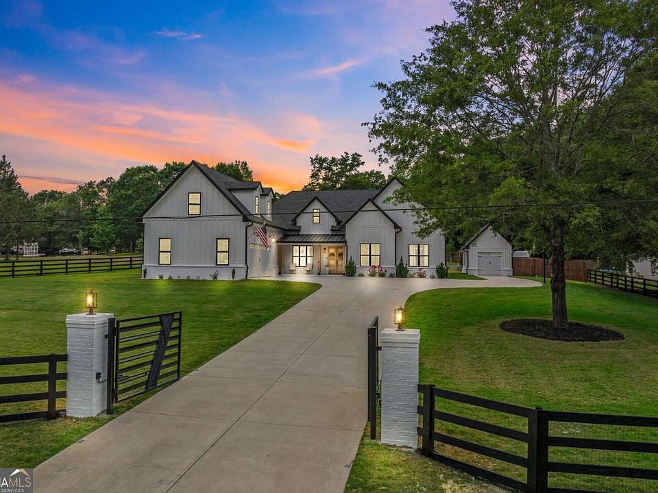 Fresh on the market at a new price - don't miss this Monroe luxury estate! Pass through the impressive iron gates and discover a flat acre estate designed to impress at every turn-crafted for stylish living, luxurious comfort, and unforgettable entertaining.. With 5 bedrooms, 5 full baths, and a detached sauna with its own full bath, this property delivers everyday elegance and wellness living-all with no HOA restrictions. Soaring 12' ceilings and designer lighting set an impressive tone throughout the main living areas. The chef's kitchen is crafted for both beauty and function-featuring quartz counters, marble backsplash, convection oven, pot filler, built-in microwave, and a custom oak-accented hood alongside premium appliances. The great room showcases a striking fireplace with quartz built-ins and bespoke oak shelving, creating a warm and inviting centerpiece. Bi-fold glass doors expand your living space onto a vaulted screened porch with fireplace and tiled floors, bringing the outdoors in for year-round enjoyment. The owner's retreat offers a spa-inspired bath with soaking tub, walk-in shower, dual vanities, heated flooring, and a custom walk-in closet-every detail designed for relaxation and luxury. Outdoors, the estate is set up for true resort-style living with a detached sauna (full bath), custom fire pit, and a pool-ready yard-the perfect setup for entertaining and future expansion. A detached garage, oversized laundry, and thoughtful storage throughout add practical convenience to the luxury. Located just minutes from vibrant downtown Monroe with its shopping, dining, and entertainment, top-rated private schools like George Walton Academy, a brand-new YMCA fitness center, and scenic parks, this estate perfectly blends luxury, privacy, and lifestyle in one extraordinary package. Homes of this caliber and location are extremely rare-schedule your private tour today and experience the very best of Monroe living.