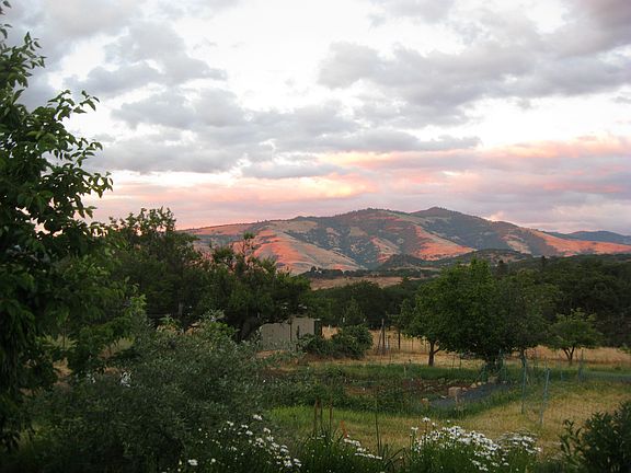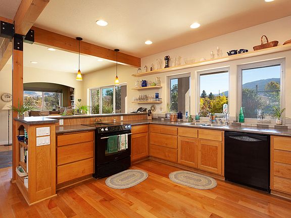 This charming home, with amazing mountain views, was constructed in 2006 and offers high ceilings and abundant light throughout. The large, open kitchen (part of a great room) has a pantry and plenty of cabinetry. The master bath has a soaking tub and separate tiled shower. Upstairs are two bedrooms, bath, den and office with view. the home has been upgraded for energy savings including a Tulikivi masonry stove, 23 solar panels: 5.685KW grid-tied with battery backup for all critical circuits, and a new energy-saving heat-pump water heater. Cost of these improvements is about $50,000.00. The home is located on 3/4 acre parcel with adjoining 3 acres of EFU land, which is fenced and cross-fenced. There are multiple fruit and nut-bearing trees, berry bushes and large fertile garden which provides healthy fresh food. Perfectly set up for sustainable living. View, enjoy, dream!
