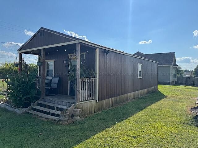 If you are looking to downsize and have low maintenance this one is for you. Tiny home with lots of charm. The interior has burned wood with lvp flooring. The kitchen has standard size appliances, the bathroom has a shower stall. The living area has a full size sofa and loveseat, bedroom has a king size bed, a full closet with washer and dryer space, everything you need. 12X32 shop/shed.