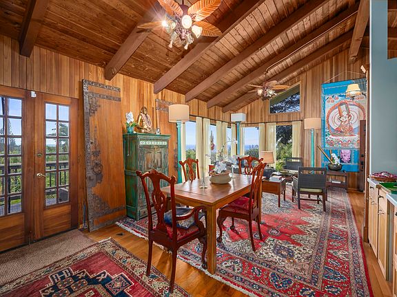 Serene estate set on 3.7 lush, tropical acres with sweeping ocean views, located just past Twin Falls in one of Maui’s most established off-grid communities. This peaceful and private property offers a retreat-like atmosphere, featuring an extensive collection of mature palms, a perennial stream, and gentle ponds that invite reflection and creative expression. Meandering paths encourage slow walks and quiet moments of connection with the land, with endless potential for expanded tropical gardens. The property invites you to grow your own food and live a self-sustaining lifestyle. At night, it feels as though you could reach out and touch the stars. Nestled within the grounds is a tranquil meditation temple designed to calm the heart and center the mind, along with a thoughtfully curated meditation garden adorned with beautiful sculptures that add an artistic, soulful presence to the landscape. The land feels intentional, grounded, and naturally inspiring—ideal for those drawn to mindful, creative living. The two-story residence features 5 bedrooms and 6.5 baths, complemented by a dedicated library and an additional computer room—well-suited for study, remote work, or creative pursuits. An expansive covered deck capturing panoramic ocean and garden views. An opportunity for those seeking privacy, tranquility. Seller financing is offered. This is unit A of CPR