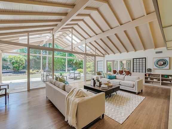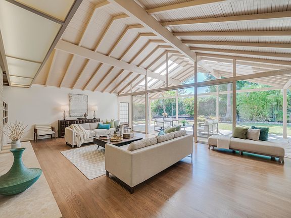 Architecture, location and a slice of Hollywood history! This impeccably maintained Mid-Century Modern treasure is one of TVs most familiar exteriors, a stand-in for the fictional Miami locale of The Golden Girls. The TV interior was just a set; the inside of the real Brentwood residence was private and is being revealed for the first time in 65 years. Inspired by the beauty of Mid-Century Japanese/Hawaiian architecture, award-winning Hawaiian architects Johnson and Perkins were commissioned to design this 4-bedroom dream home, custom built in 1955. Floor to ceiling glass, clerestory windows and ultra-high beamed ceilings create expansive volume and visual transparency perfectly connecting indoors and out. Natural colors and textures create a tranquil atmosphere and sliding shoji screens and built-in cabinetry subtly define space. Pristine original oak floors and the original turquoise, avocado and yellow kitchen are among the beautifully preserved period details. Trust sale.
