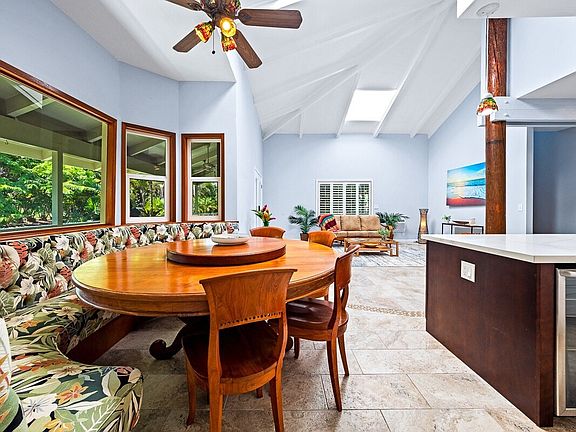 Enchantment awaits with this Gorgeous Estate in Keaukaha! Located on Nene St, just one block from the ocean, private and quiet on a fenced 1/2 acre with swimming pool and pool house. Very little traffic on this road with wonderful neighbors. This oceanside community is made for walking, biking and downright enjoying the lifestyle. Just a couple hundred yards to the beach, set back from the main drag. <br>Skylighted living room and top quality chef's kitchen with built-in dining booth make this an entertaining delight. Decks all around lead to the adjacent studio and beautiful back yard with many fruit and flowering trees, see list attached. 3 full bedrooms in the main home plus the pool house can double as living quarters as well. The primary suite upstairs has ocean views with sounds of the ocean and horizon views of the the Hamakua coastline and ocean. <br>Enjoy the spacious kitchen and open concept floorplan enhanced with Tiffany style lighting. Barbeque by the pool, in the spacious deck area, shower after swimming in the outside shower, or full bath in the pool house. <br>They don't even build these anymore! True "Pole House" with only 2 poles in the interior, the rest all exterior poles. This house was built for the setting.<br><br>* Custom Plantation shutters throughout<br>* Large walk in Shower/Bathroom and indoor Laundry off Primary bedroom<br>* Custom kitchen with quartz counter tops and additional handwashing sink<br>* Cold Drink fridge<br>* Dual Ovens and Gas Range<br>* Koa accents and Koa Laminate Flooring <br>* Tiled Living area, Family room, Kitchen and Bath<br>* Separate Yoga Studio<br>* Over 1400 sq. ft. exterior decks<br>* Koi Stocked pond<br>* 24 Solar Panels Sun Run system<br>* Swimming pool, appx 24 X 48 inground and refinished<br>* Electric Gated Entry<br>* 1/2 acre chain-link fenced yard<br>* Separate Workshop <br>* Gas Hot Water heater, 50 GM<br>* Property is outside the 3.2 ft Sea Level Rise