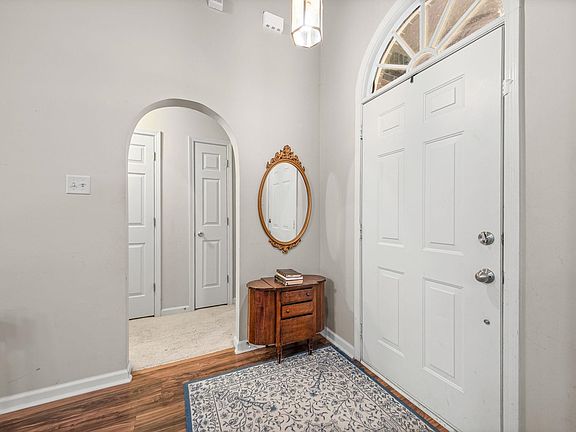 This 3-bedroom, 2-bath home features a spacious split-bedroom floor plan with an upstairs bonus room. The living room offers vaulted ceilings, rich wood flooring, and a fireplace that opens to a sun-filled dining area and kitchen with plentiful cabinet space, and a breakfast nook overlooking the backyard. The primary suite includes a large bath with double vanities, a separate shower, and a soaking tub. Enjoy quiet evenings on the back patio surrounded by mature trees in the fenced yard. Located at the back of a peaceful neighborhood just minutes from shopping, restaurants, and Hwy 64 access. A perfect blend of comfort, convenience, and small-town charm!