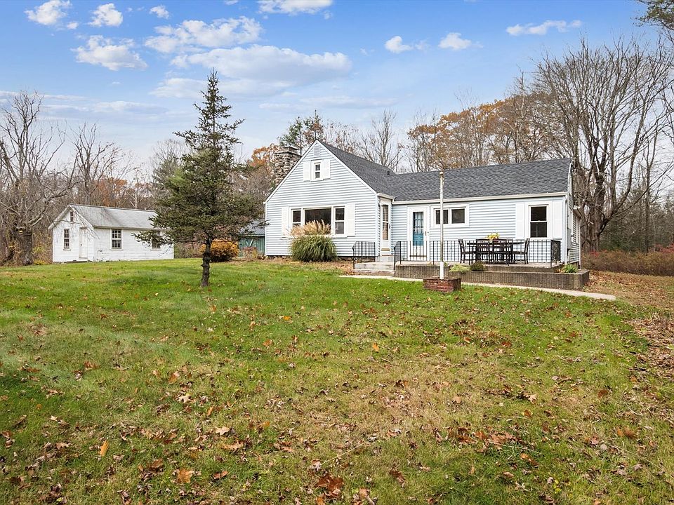 Tucked away in the scenic foothills of picturesque Hartland, this charming country retreat offers the perfect blend of privacy, nature, and peaceful living. Set on 1.5 tranquil acres near the 5,500-acre Tunxis State Forest, you'll enjoy direct access to miles of hiking trails and unspoiled natural beauty right from your doorstep. The home features three spacious bedrooms and a full bath, with an inviting open-concept living and dining area centered around a cozy wood-burning fireplace, perfect for relaxing after a day outdoors. The kitchen opens to a serene patio, an ideal spot to sip your favorite beverage while taking in the sounds of nature. The level, open yard offers ample space for gardening, gatherings, or simply enjoying the quiet surroundings, it's perfect for summer picnics, star gazing, or outdoor games. Recent updates include a new roof and gutters (2019), a new septic system (2018), and a high-efficiency Buderus boiler (2019). A heated, self-standing outbuilding provides flexible space for a home office, studio, or workshop. The heater is in place, just connect propane for full comfort year-round. Whether you're looking for a weekend escape or a full-time haven, this property delivers the peace, privacy, and natural beauty that define true country living. The seller is truly grateful and deeply humbled by the incredible interest and thoughtful feedback from everyone. In light of the multiple offers received, the seller kindly requests that all final and best offers be submitted by Monday, November 10, 2025, at 5:00 PM.