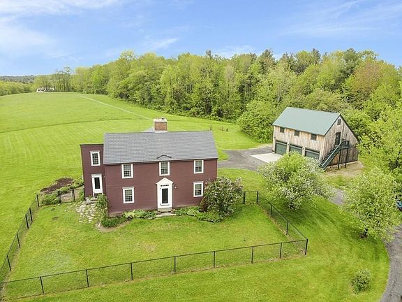 Impeccably maintained with access to Queen Lake within walking distance! This wonderful antique Saltbox recreation has the charm and character of yesteryear but features the conveniences of modern living. Poised upon a gently sloping hill this home stands prominently over the expansive 12+ acres of land. Deeded accesThe eat-in kitchen greets you with an enormous fireplace, bee-hive oven, and stone countertops. Freshly painted wide pine flooring carry on throughout the living room, sitting room and dining room. The pellet stove in the formal living room makes for a cozy and inviting atmosphere. The upstairs features three well proportioned bedrooms, each with closet space. The master includes a fireplace, an attached bath, and walk in closet. The basement is spacious and tidy. The detached three car garage is a car lovers dream! The extra space above offers wonderful opportunities. If you're looking for charm and character, without the extra maintenance of an older home this is it!