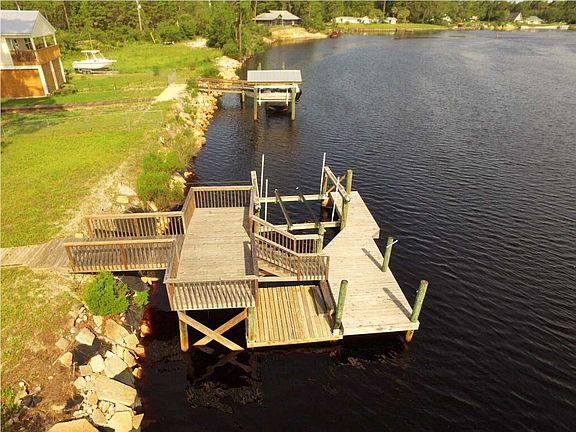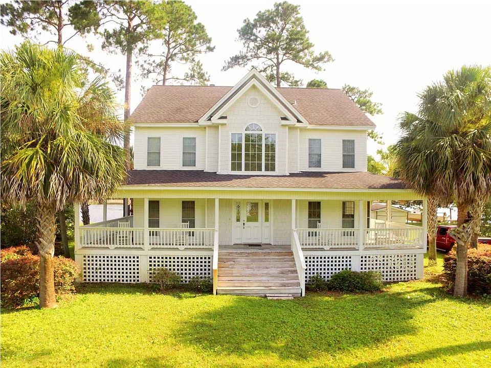 River front two story home with dock and boat lift. Fire place, new appliances in kitchen and laundry. Large wrap around porches all around the house.Back porch is screened in. River depth at dock is 21 ft. Home site on river is located on lot containing .47 of an acre. Lot across road is .53 of an acre. Possibility of separating and selling lot across road is 0.53 of an acre. Sweeping wrap around decks with walk way down to the dock and boat lift.