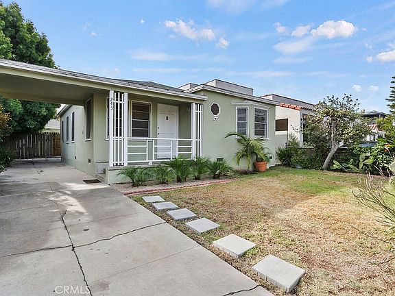 When a 1941 California Bungalow living meets the modern explosion of development and coastal luxury, you sometimes get an inspiring gem that defies the rules and maintains its own identity. This true California coastal bungalow still holds, with a tight fist, some of the nostalgic features of a simpler time. This 2 bedroom 1 bath 919 square foot home is situated on a 4255 square foot lot and gives the feeling of simplicity and open space in a time when space feels invaluable. Enter through a gated driveway to your private covered porch w/ room to watch the passing parade. Hardwood floors are believed to be original, and intricate coffer styled ceiling detail is a nod to an era long past. The spacious living room is complete with fresh paint, original double hung windows, plenty of light, and open concept living room/dining room space. Dining room isn’t large, but it provides enough space for those cozy family meals. Kitchen is believed to be finished with original hardwood cabinets w/ intricate bottom frame detail on the uppers. Original ceramic tile with true to era inlaid detail. Plenty of light filters through picture window overlooking the backyard giving the kitchen a cozy but open feel. Utility room is spacious with stackable INDOOR laundry space, water heater, and upper storage. Bedrooms are what one might expect from a 919 square foot bungalow. Reasonably sized, simple, and utilitarian. One bedroom maintains the original built in closet space, while the other has been updated with mirrored doors. Both have large windows that give the home plenty of light. Bath is spacious given the original footprint, and is complete with tub/shower, vanity sink with original cabinets and counters, and frosted privacy window for plenty of ventilation. The backyard is what everyone needs in a cramped and crowded coastal setting. Plenty of grass area, covered patio, cactus garden. This home is a diamond in the rough and ready for someone to restore it to its former glory. A perfect coastal retreat, or the site of a future ultra lux gem.
