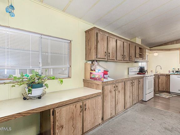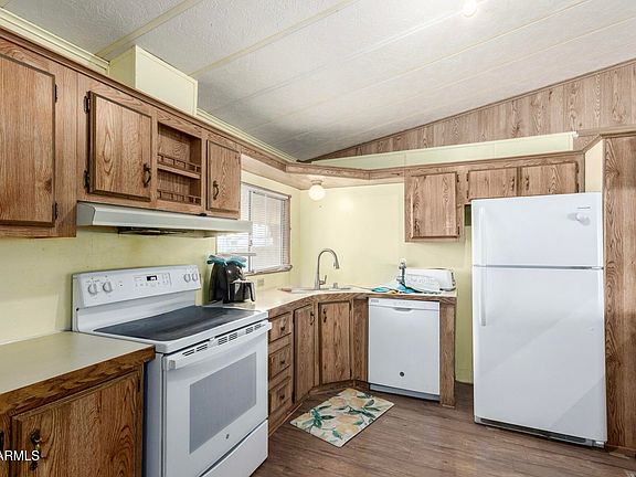 All ages park. Financing Available. Large 3 bedroom home (28 x 60) or 1680 sq ft. Central HVAC is 3-years new! Huge living room, formal dining room, spacious kitchen, and full laundry room with all appliances included. Attractive green turf in the front yard makes for an easy-to-maintain yard. Fenced back yard for your four-legged friends. Room to park 3 vehicles with guest parking across the street. Lot rent is $1100 per month. Lot size approx 90 x 50.