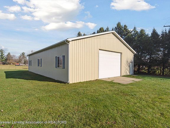 Welcome to this picturesque country retreat in Webberville, MI! Price adjusted - motivated sellers. This charming 3-bedroom, 2-bath ranch sits on 2 manicured acres, offering the perfect blend of comfort and functionality. The home features a thoughtfully designed split-bedroom floor plan, striking a balance between openness and cozy separation. The kitchen is tucked slightly away from the living room, providing a distinct space for meal prep while still maintaining a connected feel—perfect for hosting family and friends. The spacious bedrooms all boast ample closet space, including a private primary suite with its own full bath. This home offers a versatile foundation setup, featuring a slab, a crawl space, and a partial basement for easy access to the well-maintained mechanicals. This clean space also offers safety from a severe storm threat. Outdoors, you'll find a fully equipped 40x60ft outbuilding with cement floors, ideal for storing a camper or tackling year-round projects. Bonus - it also has a 100-amp electrical panel and soft water. Are you a pet owner? You will love the underground fencing for your furry friends. A 2-car attached garage completes this property, offering convenience and storage options. Enjoy the peace and quiet of country living in this versatile and welcoming home. Schedule your showing today! FEATURES AT A GLANCE: New Landscape w/watering system/Generac Whole House Generator/New Roof(2023)/Leafguard Gutters(2019)/New Furnace & A/C (2023)/New Blatter Tank (2022)/Iron Filter Tank & Softener Owned/Stainless Steel Gas Stove & Microwave/Black Refrigerator & Dishwasher/Black Stainless Steel Front Loading Washer & Dryer on Pedestals/Bamboo Wood Flooring throughout Main Living Areas/New High-Energy Front Door/Security Cameras, Inside & Out w/Ring Doorbell/New carpet and Paint in Primary Suite/16'x16' Cement Rear Patio w/Gazebo/Quality Lighted Flagpole. For full disclosure, the Listing Agent is related to the seller.