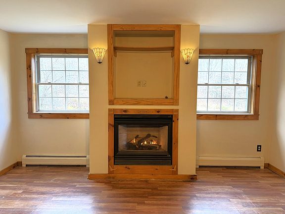 Tucked behind a cluster of trees on a quiet, town-maintained dead-end gravel road, this inviting Ranch home offers comfort, functionality, and country charm on 3 acres of open and wooded land. The spacious open floor plan combines the large kitchen/dining, and living areas—ideal for entertaining or relaxing by the warm glow of the beautiful gas fireplace. A full-length covered porch stretches across the front, providing the perfect spot to enjoy peaceful mornings or evening gatherings outdoors. The main level also features two bedrooms and a full bath with convenient laundry. The full basement expands your living space with a welcoming recreation room complete with a bar ~ perfect for gatherings ~ plus a full bath, utility room, and a one-car garage ~ which could be finished off as additional living space if you choose. Practical touches include oil hot water baseboard heat and wiring for a generator, offering comfort and peace of mind year-round. Outside, you’ll find a separate one-car garage with extra storage, a charming mini cabin for guests or hobbies, and plenty of room for outdoor enjoyment. Entertain around the firepit, make use of the outdoor electricity hookup and water spigot, take in the beauty of your private setting or use the sunny, open areas for planting gardens that you have been wanting. This property combines rural tranquility with modern convenience—a wonderful place to unwind, entertain, and call home!