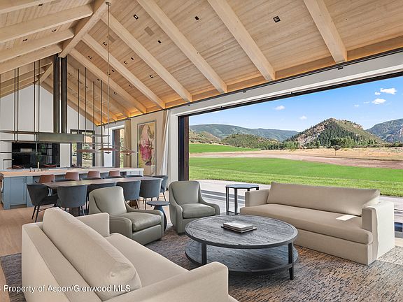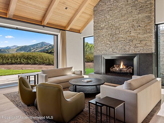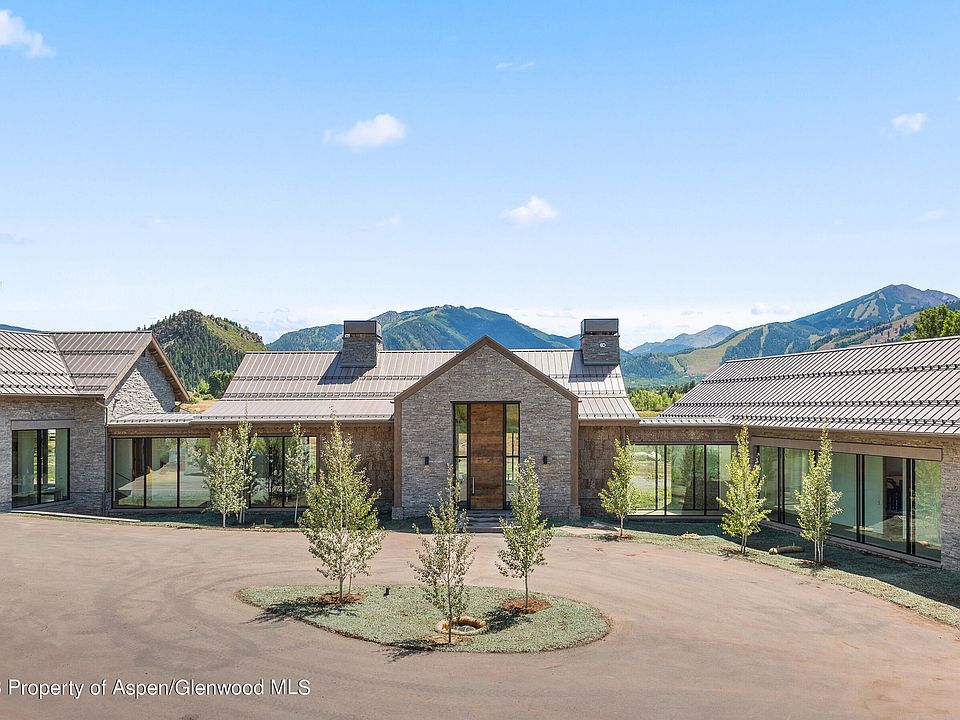 A custom-built home for the most discerning of renters. Situated on a legacy property, this bespoke home boasts soaring ceilings and panoramic views from every room. Beautifully appointed throughout, the 5,750 sq foot house features an open living space with custom furnishings and mill work, a large gourmet kitchen, and an expansive living room with a stone fireplace. There are two primary suites, both feature king size beds with luxurious linens and furnishings, custom marble slab bathrooms with separate walk-in shower and bathtub, and floor to ceiling windows that feature panoramic, uninterrupted mountain and valley views. Birch bark, stone and glass seamlessly incorporate the natural setting, while floor to ceiling glass doors provide unparalleled indoor/outdoor living.The outdoor patio and lawn include a hot tub and outdoor entertaining space to enjoy year-round. The design, views and privacy of this unique property provide everything one could desire in a luxury vacation home.