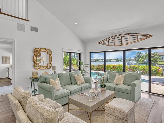 Lovely 5BR/5BA riverfront home w/over 3,700 sq ft & water views from nearly every room. Exterior amenities include outside bar & large pool overlooking the water w/spectacular views. Property and contents represented in photos is subj. to change. Sizes approx./subject to error.