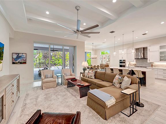 Built in 2023, backing up to a preserve for complete privacy ($150k lot upgrade), this home in The Strand blends modern design w/ effortless Florida living. A bright, open floorplan showcases wood-look tile floors, coffered ceilings, & impact windows that fill the home w/ natural light. The kitchen offers a waterfall island, premium finishes & appliances & natural gas cooking. 4 beds & 4 full baths. Private screened saltwater pool/spa, ideal for year round enjoyment. Whole house generator, 3-car AC/Heated garage. Private deeded beach access and direct access to the historic Jungle Trail.