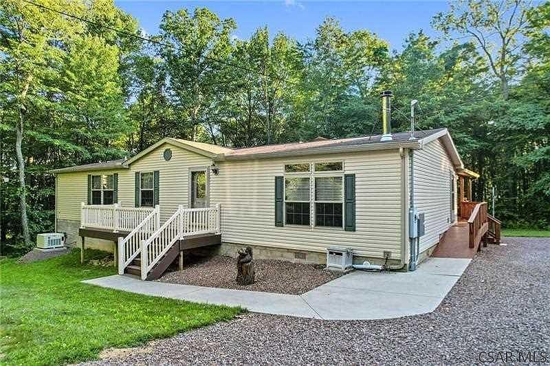 Four season mountain, river, lake and trail destination home waiting for an outdoor enthusiast to enjoy! Settle in to your own private & secluded 60 acres with a wide open floor home in the heart of the Laurel Highlands! Abundance of wildlife surround this 3 bedroom home, Master bedroom ensuite w/sliding glass door to wrap around deck, modern kitchen/laundry room of kitchen, new appliances, Central A/C, Culligan water system, new flooring, and gathering room w/wood burner. 500 gallon propane tank, 20 kw generator, 30x50 pole barn, wood shed, permanent tree stands, fruit trees, flat rock fire pit and your own personal waterfall on the property. HIGH SPEED INTERNET, MOVE IN READY HOME, PRIVATE 60 ACRES
