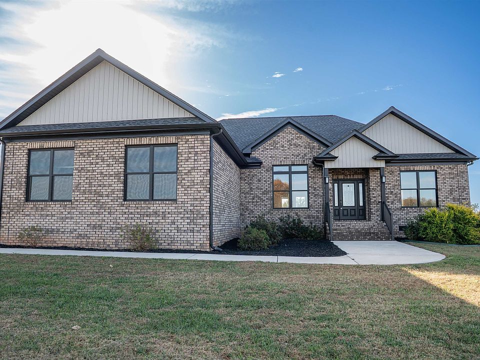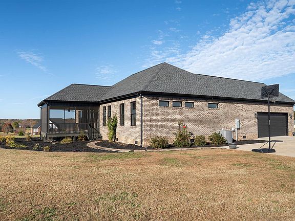 Experience the perfect blend of style, space, and convenience in this stunning one-level, brick home set on almost 4 acres of open, usable land. Built just 3 years ago, this property offers the feel of new construction with the benefit of established craftsmanship and thoughtful design. Step inside and be greeted by gorgeous red oak hardwood floors that flow seamlessly throughout the main living areas, adding warmth and elegance to every room. The expansive great room features soaring ceilings, a sleek accent wall, a modern built-in electric fireplace, and abundant natural light pouring in from the wall of windows overlooking the backyard. The open-concept layout transitions into a beautifully designed kitchen complete with dark custom cabinetry, granite countertops, stainless steel appliances, and a large island perfect for entertaining. The adjacent dining area provides even more room to gather and enjoy the views. This home offers 3 spacious bedrooms and 2 full bathrooms, including a serene owner’s suite with a trey ceiling, large windows, and an ensuite bathroom featuring dual vanities, a walk-in tile shower, and direct access to a generous walk-in closet. Enjoy peaceful mornings and relaxing evenings on the screened-in back porch, overlooking your expansive acreage—ideal for gardening, recreation, or simply soaking in the privacy and tranquility. With a long concrete driveway, attractive brick exterior, and thoughtfully landscaped surroundings, this property is sure to wow with curb appeal and comfort from the moment you arrive. If you’re looking for modern single-level living, acreage, and a move-in-ready home with high-end finishes, this is the one you’ve been waiting for.