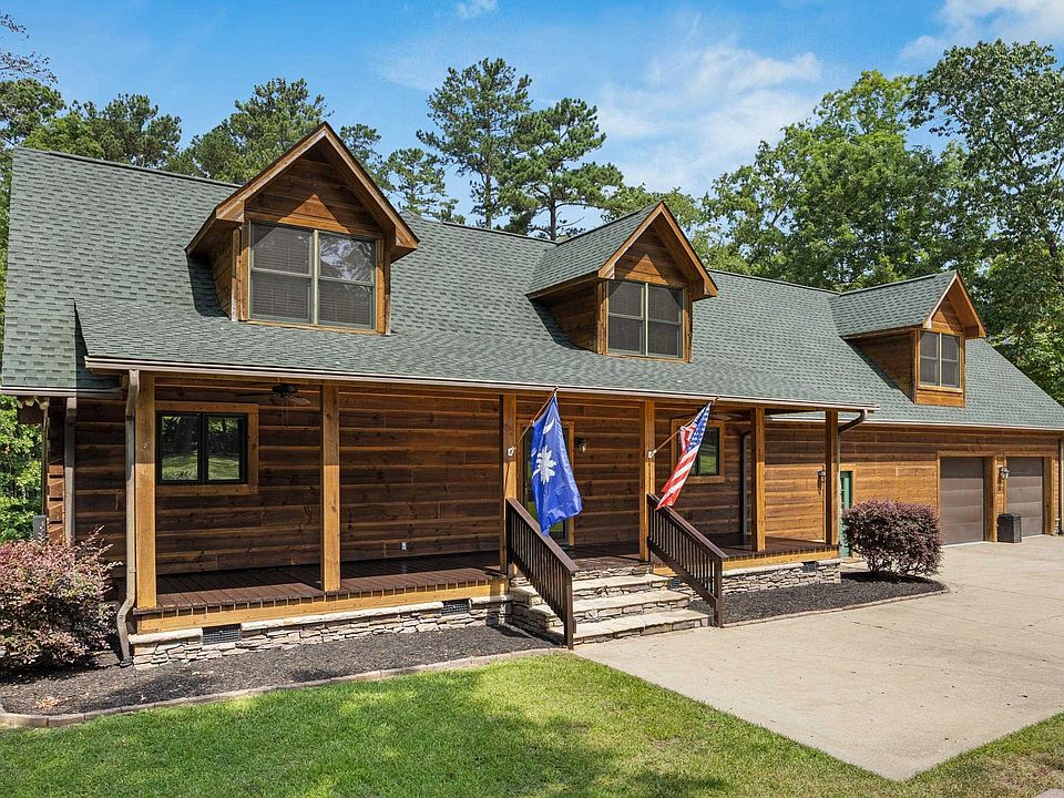 Welcome to your piece of Paradise on Lake Murray! This peaceful Lakefront Retreat sits on 1. 75 acres, and has deep water with private dock! This home features 4 BR/5 BA. The Master Suite with separate sitting area, has bath with walk-in shower and dual vanity. A spacious Family Room is perfect for gathering and has a gas fireplace. The Kitchen features custom stained cabinetry, granite countertops and backsplash, a bar, and lots of storage. The formal dining room is located on the backside (water side) of the home. There is an additional full bath located at garage entrance. In addition to the Family Room on main level is a room perfect for home gym/office. On the second level you will find 3 additional bedrooms and 2 full baths. The basement level of this home is accessible from the outside and would serve as a perfect guest or in-law suite; complete with a kitchen and bath. Enjoy outdoors with beautiful porches on both side of this home, as well as patio with firepit and hot tub. 30x50 workshop with 3 garage doors. If you don’t like interior wood tones there is an example at end of photos on how you could white wash the logs. Disclaimer: CMLS has not reviewed and, therefore, does not endorse vendors who may appear in listings.