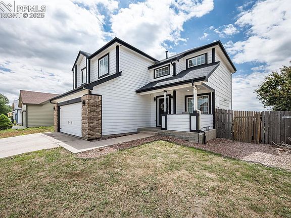 Welcome to this beautiful 2-story home featuring 4 spacious bedrooms, 2.5 bathrooms, and an unfinished basement offering endless potential. The open-concept main level boasts a cozy gas fireplace perfect for chilly Colorado evenings, while central AC keeps you cool during the hot summer months. Enjoy cooking in the well-equipped kitchen with all appliances included—and yes, the washer and dryer stay, too! Step outside to a fully fenced backyard that backs to peaceful open space—ideal for relaxing, entertaining, or letting pets roam free. The 2-car garage provides ample storage, and the home is conveniently located near military bases, shopping, dining, and more. Don't miss this incredible opportunity to own a move-in ready home in a sought-after neighborhood!